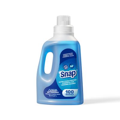 Stains and odours don’t stand a chance with Snap Triple Enzyme 3X Laundry Detergent. Three times more powerful than standard detergents, Snap Triple Enzyme 3X Laundry Detergent provides maximum cleaning power to fight the toughest stains and odours with a light, fresh scent. Snap deep cleans your clothes for the whitest whites and brighter colours load after load. Wash away layers of grime thanks to innovative enzyme cleansing technology that power lifts stains, but remains gentle on your clothes. Snap Triple Enzyme 3X Laundry Detergent is an eco-friendly laundry solution with biodegradable, non-toxic, phosphate-free and plant-based surfactants and essential oils. Snap Triple Enzyme 3X Laundry Detergent is perfect for High Efficiency (HE) washers; just use half the recommended amount to do up to twice as many loads as the leading 1 L. bottle! Make washing clothes a snap with Snap Triple Enzyme 3X Laundry Detergent!